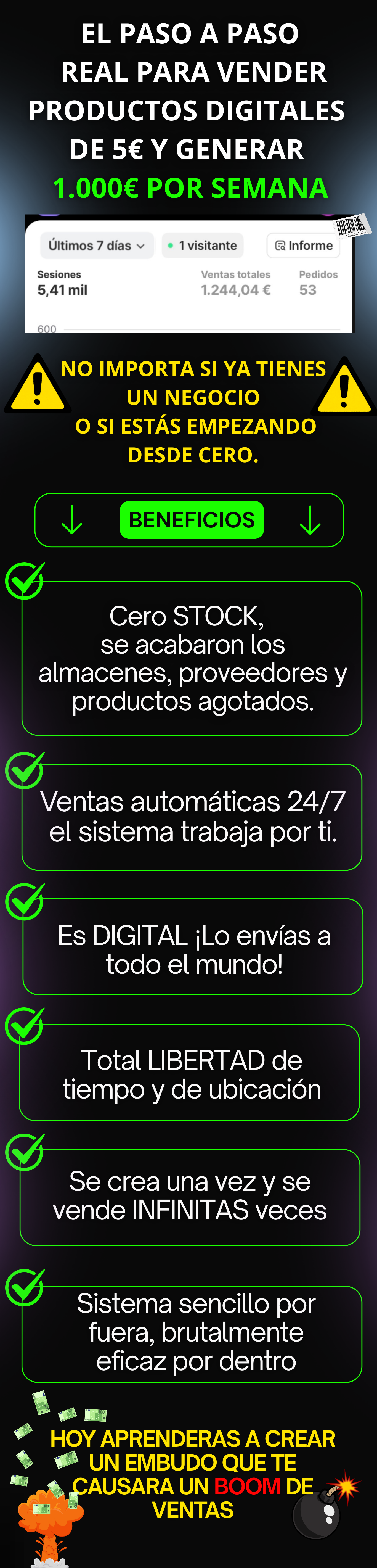 Es un sistema simple y probado para generar ventas con productos digitales (cursos, ebooks, programas, herramientas, etc.).